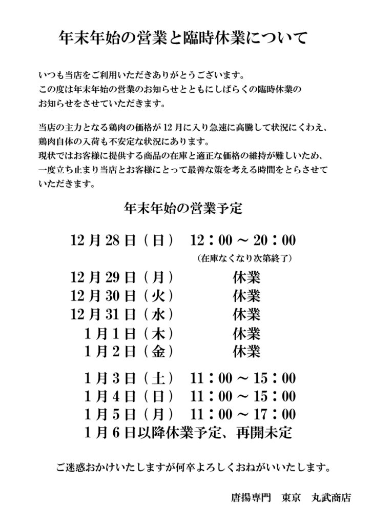 • 12/28 年内最終営業日 じゃんけん大会開催!!