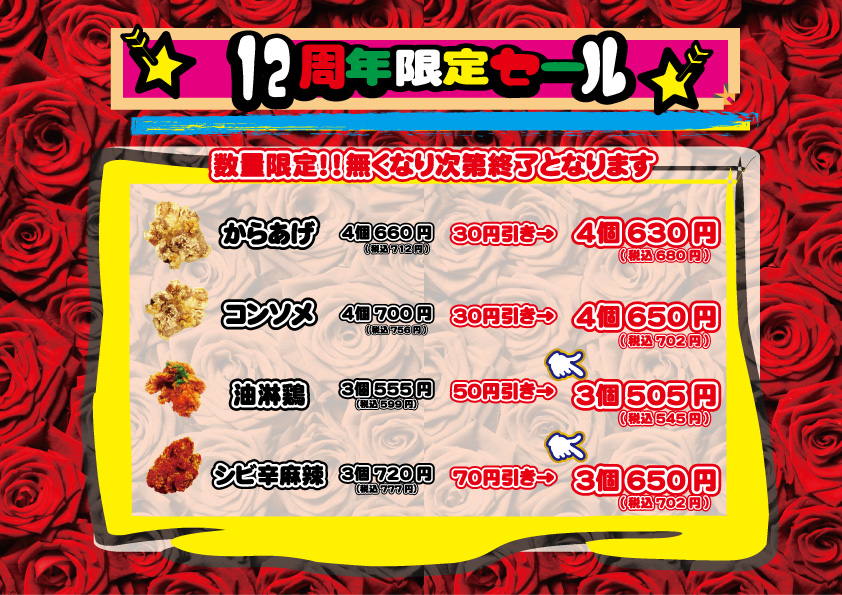からあげ4種類を特別価格でご提供!!ここでしか食べられないシビ辛麻辣も買えます!!