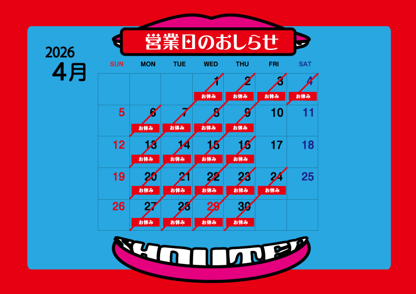 ※上記以外にも臨時休業をする場合がございます。予めご了承ください。